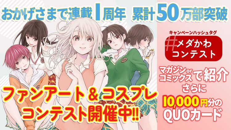 コンテストの優秀作品には1万円分のQUOカードが進呈されるほか、週刊少年マガジンまたは「黒岩メダカに私の可愛いが通じない」の単行本に掲載予定だ。詳細は誌面および週刊少年マガジンの特設ページにて確認を。