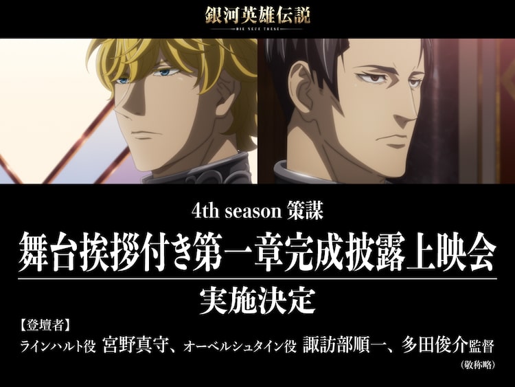 アニメ「銀河英雄伝説 Die Neue These」のフォースシーズン「策謀」第1章の舞台挨拶付き完成披露上映会が、9月24日に東京・新宿ピカデリーで開催される。