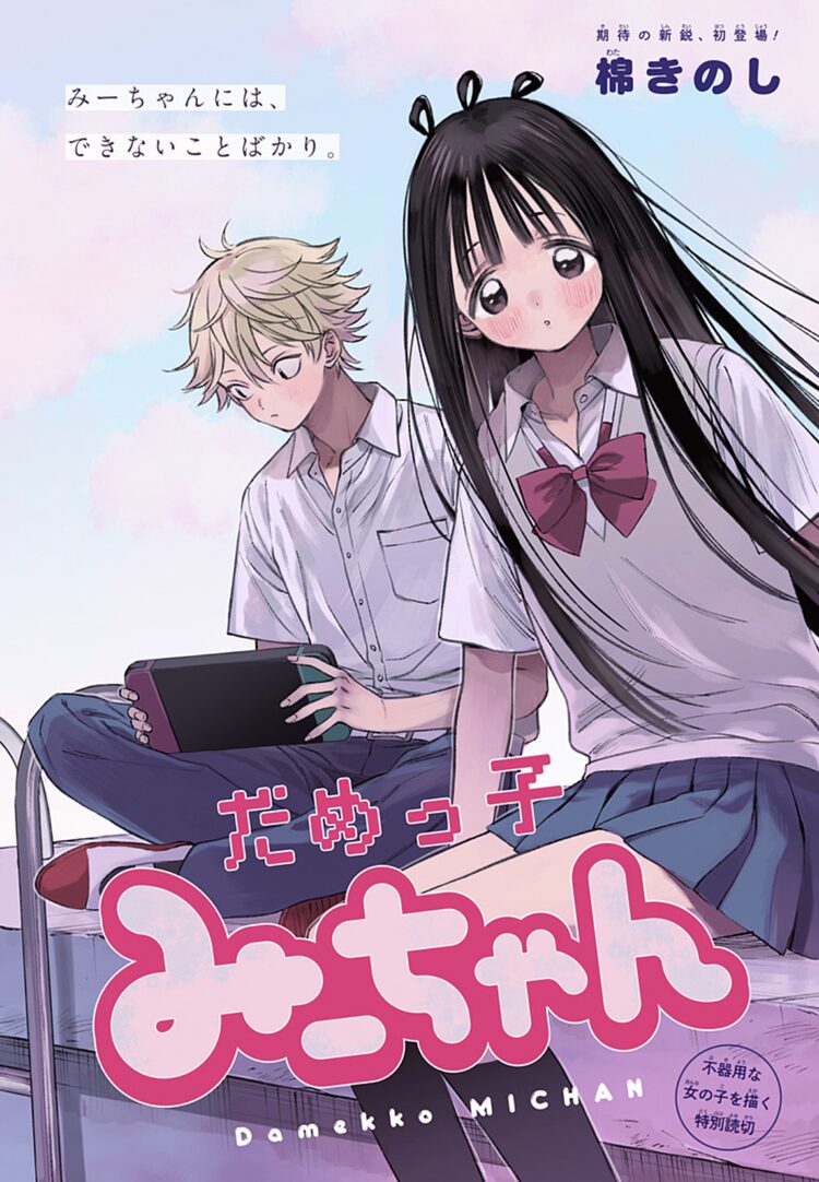 みんなができることが上手くできない女の子の成長物語「だめっ子みーちゃん」 2022年9月9日2022年9月9日 editor 「だめっ子みーちゃん」扉ページ (c)棉きのし/集英社棉きのしの読み切り「だめっ子みーちゃん」が、本日9月9日に少年ジャンプ+で公開された。 「だめっ子みーちゃん」の主人公は不器用な少女・みーちゃん。彼女はみんなができることが上手くできず、学校ではあけみちゃんにバケツの水をかけられてしまう。「今日も人に迷惑をかけて嫌な気分にさせてしまった」と、自分の行動の悪いところを考えているみーちゃん。そんなある日、彼女が屋上でゲームをしているミケくんに出会ったことから物語は動き出す。 関連記事三鷹の森ジブリ美術館ライブラリー「20周年記念映画祭」で「しわ」など厳選作を上映富田祐弘「愛天使シリーズ」最新作がショートアニメ化、8コママンガをもとに日常を描くアラサー女子が忘れていた夢を思い出す…ピアニストを夢見る年下男子と同棲物語「薬屋のひとりごと」黄色く染まった銀杏を背に微笑みあう阿多妃と里樹妃「鬼滅の刃」無限城編キャラクターCM第4弾は我妻善逸、善逸と獪岳が対峙「わたしの幸せな結婚」新作アニメは全3話の特別篇、2026年放送 キービジュアルも Tweet