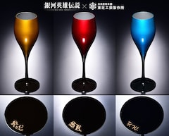 「銀河英雄伝説」ラインハルト、キルヒアイス、ヤンをイメージした玉虫塗のワイングラス