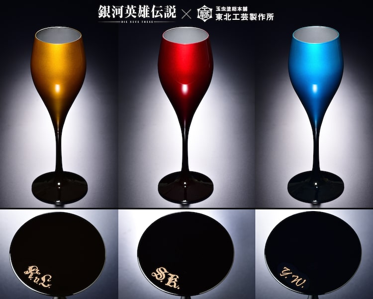 アニメ「銀河英雄伝説 Die Neue These」と宮城県の伝統的工芸品「玉虫塗」とがコラボしたワイングラスが、Production I.Gから発売される。