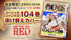尾田栄一郎原作による映画「ONE PIECE FILM RED」の第8弾入場者プレゼントとして、「スペシャルシャンクス104巻掛け替えカバー」の配布が決定。11月12日より全国50万枚限定で配られる。