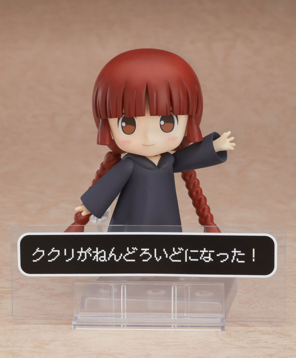ミグミグ族の生き残り・ククリを立体化した「ねんどろいど ククリ」。表情パーツにはキュートな「笑顔」やおなじみの「さっぱりな顔」に加え、あまりのつらさに自我を失い凶暴した「ウニョラー顔」の3種が付属する。また「魔法陣の杖」「トカゲのしっぽ」「魔法陣」「さっぱり妖精」「吹き出し」といった作品独特のオプションパーツも用意された。