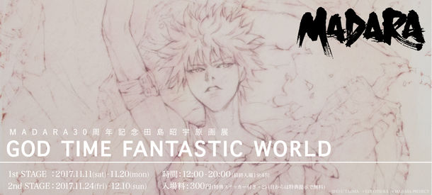 「MADARA30周年記念 田島昭宇原画展『GOD TIME FANTASTIC WORLD』」バナー。 (c)SHO - U TAJIMA (c) EIJI OTSUKA (c) MADARA PROJECT