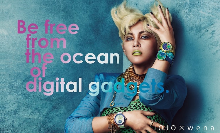 「wena 3 -JOJO Edition-」では、空条徐倫、空条承太郎、エンリコ・プッチをモチーフにした3モデルをラインナップ。「Jolyne Edition」はG.D.st.JAILのロゴを編み込んだファブリックのベルトや、裏蓋に描かれたストーン・フリーなど、徐倫を取り巻く世界やまわりのキャラクターとの関係性を表現したデザインに。「Jotaro Edition」は、承太郎の特徴的なパイソン柄のパンツがレザーベルトで再現されており、分針にはスピードワゴン財団のエンブレム、裏蓋にはスタンドのDISCが配された。また5秒間秒針が見えなくなる構造で、時が止まったかのような演出が楽しめる。