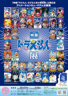 「映画ドラえもん」シリーズの最新作「映画ドラえもん のび太と空の理想郷(ユートピア)」が、2023年3月3日に公開されることを記念して行われる今回の企画展。毎年春に公開されてきた「映画ドラえもん」全41作品を、映画のストーリーや登場人物、物語の世界観などを交え、作品別に紹介していく。また42作品目にあたる最新作「映画ドラえもん のび太と空の理想郷」の特設コーナーを展開。4面マルチモニターで、最新の予告編が楽しめる。