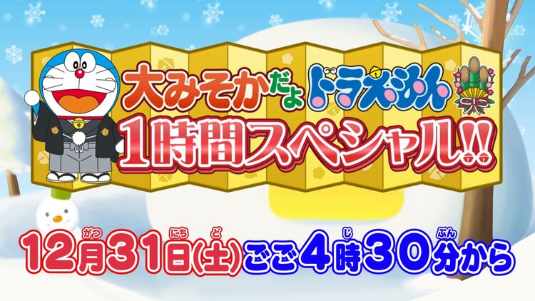アニメ「大みそかだよ!ドラえもん1時間スペシャル!!」が、12月31日16時30分から17時30分までテレビ朝日系で放送される。