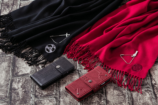 すべてのアイテムで、ヴァッシュ・ザ・スタンピードとニコラス・D・ウルフウッドをイメージした各2種をラインナップ。スマートフォンケースとストールのカラーには、ヴァッシュが着用しているコートの赤、ウルフウッドが着ているスーツの黒がそれぞれ落とし込まれた。またストールには、銃やパニッシャーといった武器をモチーフにしたピンも付属する。