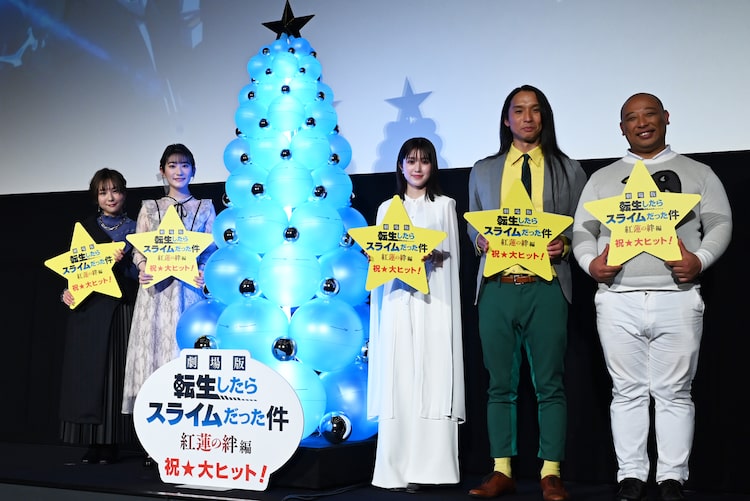 イベントでは「紅蓮の絆編」というタイトルにちなんで、登壇者たちが絆を感じたエピソードを披露する一幕も。さらにクリスマスが間近ということで、たくさんのリムルが連なった「特大リムル様クリスマスツリー」も登場した。最後に岡咲は「ヴィオレが出てくるってことをもう言えるという解放感がすごいです!(笑) 私もプライベートで映画館に行きまして、何回観ても面白いなって思ったので、皆さんも悔いが残らないように何回でも観ていただけるとうれしいです!」と呼びかけた。