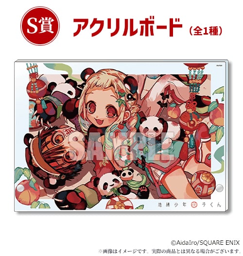 くじの景品はS賞からD賞まで用意されており、S賞にアクリルボード、A賞にトートバッグ、B賞にアクリルスタンド、C賞にミニ色紙、D賞に缶バッジをラインナップ。アイテムにはパンダの耳をつけた花子くんたちのチャイナテイストなイラストがデザインされた。なおイラストはあいだいろ描き下ろしとなる。