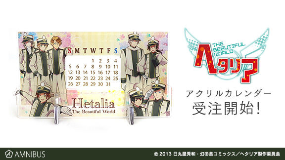 日丸屋秀和原作によるアニメ「ヘタリア The Beautiful World」の卓上カレンダーが、通販サイト・AMNIBUSにて販売されている。