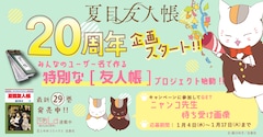 「夏目友人帳」はLaLaDX2003年7月号(白泉社)に、読み切りとして掲載されたのが始まり。20周年を記念し、「夏目友人帳」の公式Twitter(@Natsume_Nyanko)では「20周年企画 みんなのユーザー名で作る特別な[友人帳]プロジェクト」と題したキャンペーンが始動した。キャンペーンに参加すると、参加者のユーザー名が掲載された“特別な友人帳”が作られ、特典の「ニャンコ先生待ち受け画像」がゲットできる。詳細は特設ページを確認しよう。応募期間は1月17日23時59分まで。