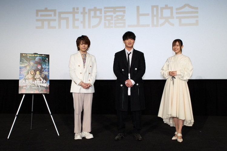 TVアニメ「大雪海(おおゆきうみ)のカイナ」の完成披露上映会が本日1月7日に東京・TOHOシネマズ新宿で開催され、カイナ役の細谷佳正、リリハ役の高橋李依、ヤオナ役の村瀬歩が登壇した。