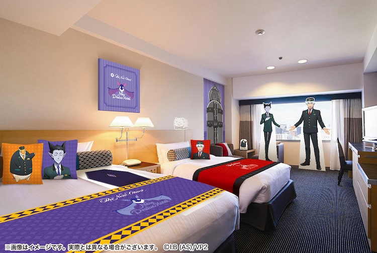 「ニュードラルクホテル」は、ホテルマンに扮したドラルクがさまざまな仕掛けを施したコラボレーションルーム。どんな仕掛けが隠されているかは、チェックインしてからのお楽しみだ。またキーホルダーなど宿泊者限定で持ち帰れるオリジナルグッズ、ドラルク・ロナルド・ジョンの録り下ろしウェルカムボイスや3人がホテルスタッフの制服を纏った等身大の描き下ろしイラストなども用意された。