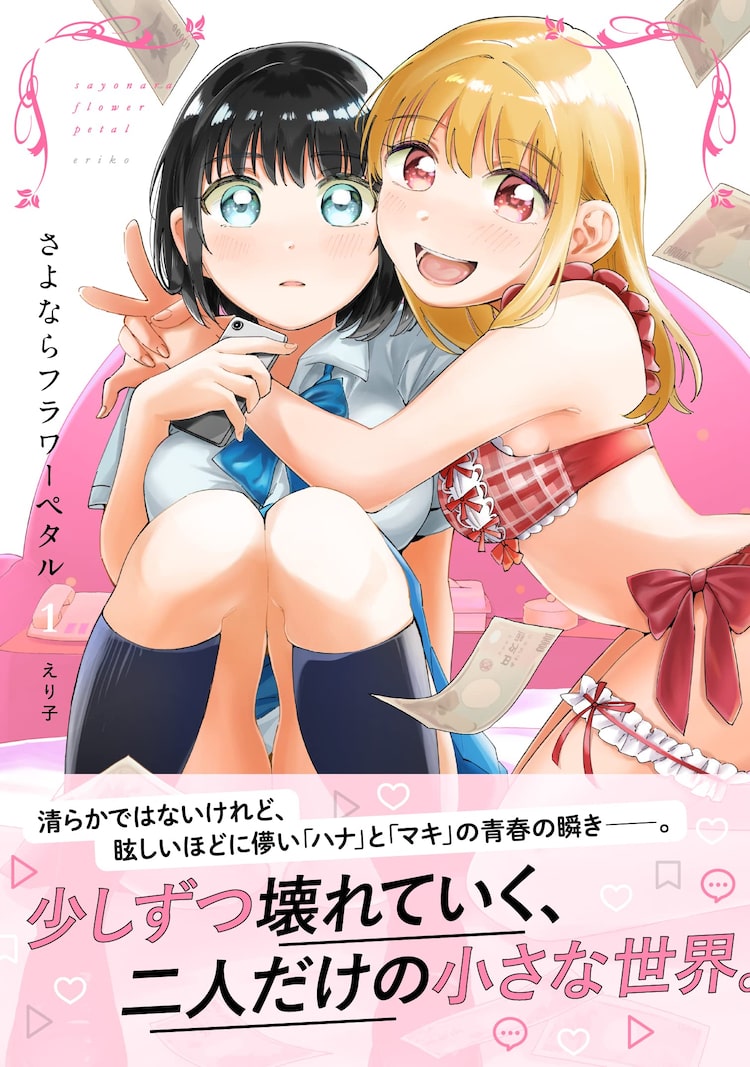 少女2人、頼れるものは自分の身体とお互いだけ「さよならフラワーペタル」1巻 2023年1月17日2023年1月17日 editor 「さよならフラワーペタル」1巻(帯付き)えり子「さよならフラワーペタル」1巻が、本日1月17日にファンギルドのレーベル・コミックアウルから発売された。 「さよならフラワーペタル」の主人公・ハナとマキは、帰る家のない根無し草の女の子たち。SNSで募った見ず知らずの男とセックスし、その様子を生配信することで金を稼ぐ2人にとって頼れるものは、自分の身体とお互いの存在だけだった。しかしホクトと名乗る謎の男性が現れたことから、ハナとマキの2人だけの世界に亀裂が走る。 関連記事おまえはだれだ?2人の大学生を取り巻く青春怪異譚「はじめの友人」1巻「ジョジョ」×グラニフの新作アイテム21種、徐倫&承太郎の親子ニットなど「ヴィジランテ」“相澤過去編”の冒頭2話、少年ジャンプ+で1週間限定の無料公開お疲れ女子2人が都内近郊の実在湯巡り、銭湯コメディ「今日はもう上がります」1巻クラス全員の性別が逆転、謎の学校に閉じ込められた21人の男女による脱出ゲーム刑事と探偵、2人の機械化人間 横尾公敏が描く“大昭和ロボットアクション”1巻 Tweet