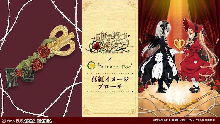 PEACH-PIT原作によるTVアニメ「ローゼンメイデン」とアクセサリーブランド・Palnart Pocとのコラボアイテム「Palnart Pocコラボ 真紅イメージ ブローチ」が、通販サイト・ARMA BIANCAで販売される。