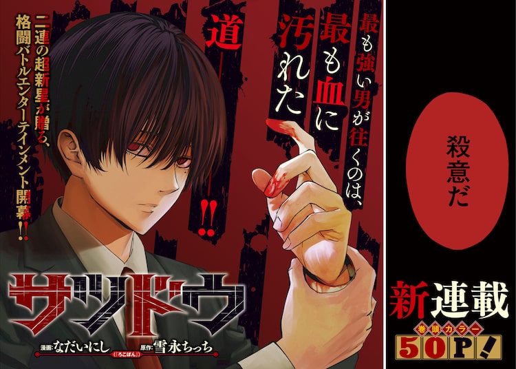 「サツドウ」は、どこにでもいる平凡なサラリーマンになりたいと願う会社員・赤森六男が主人公。製菓メーカーの商品企画部で働いている六男は、代々続く古流殺法術の家に生まれた天才格闘家という裏の顔を持っている。平凡なリーマンライフを送りたいと六男だったが、彼のもとにには半グレ・ヤクザ・格闘家たちが寄ってきて……。初回は巻頭カラー50ページで掲載された。