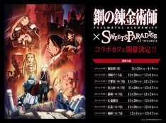 荒川弘原作によるアニメ「鋼の錬金術師 FULLMETAL ALCHEMIST」と、食べ放題店・スイーツパラダイスのコラボ企画が、11月20日から12月17日にかけて開催される。