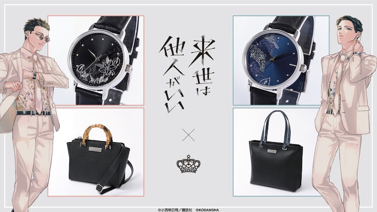 小西明日翔「来世は他人がいい」に登場する深山霧島と鳥葦翔真をイメージした腕時計、バッグが、SuperGroupiesで受注販売されている。