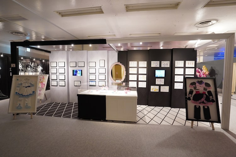 展示の中心となっているのが「全プリキュア メモリーズ」と題された、各作品の世界観が楽しめるコンセプト展示。「ふたりはプリキュア」から「デリシャスパーティ♡プリキュア」までそれぞれにコーナーが設けられ、「デリシャスパーティ♡プリキュア」であれば大きなフォークとナイフなど、その世界観を表現した装飾の中に設定画や衣装、玩具などがたっぷりと集められた。プリキュアだけでなく、壁面には歴代の悪の組織のキャラクターたちが設定画とともに飾られている。