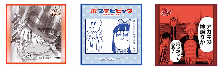 「アカギアクリルスタンド」「マミヤアクリルスタンド」「アカギ・マミヤコラボTシャツ」「ナナチダイカットクッション」「ファプタダイカットクッション」「ナナチ村もふもふブランケット」「つくしあきひと先生自画像Tシャツ」「つくしあきひと先生アクリルスタンド(井澤詩織さんイラスト加筆版)」「足軽ナナチ(大川ぶくぶ先生イラスト)アクリルスタンド」など、会場ではセット販売限定だった商品が通販ではすべて単品にて購入可能。また一度の注文で5000円以上購入した人にプレゼントされる「オリジナル特典ミニクロス」は、コミケVer.とは違う通販限定の絵柄が3種類用意された。付属するミニクロスの絵柄はランダムで、在庫がなくなり次第終了となる。