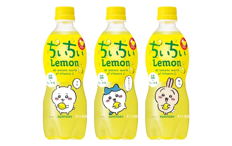 ナガノ「ちいかわ」とサントリーがコラボレート。「C.C.レモン」「デカビタC」「なっちゃん」の「ちいかわ」パッケージデザインが、2月21日より全国で数量限定販売される。
