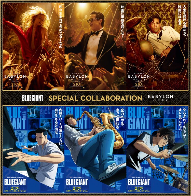 世界一のジャズプレーヤーを目指す青年・宮本大を中心に描く「BLUE GIANT」と、1920年代のハリウッドを舞台に“ジャズ・エイジ”とも呼ばれる全盛期のジャズミュージックを「ラ・ラ・ランド」の監督であるデイミアン・チャゼルが映画化する「バビロン」。2月10日に「バビロン」、2月17日に「BLUE GIANT」と、ジャズミュージックが鳴り響く映画が2週連続で公開されることに併せコラボ映像が制作された。「BLUE GIANT」で宮本大役を演じる山田裕貴と、「バビロン」の主演ブラッド・ピットの吹替を務める堀内賢雄がナレーションを担当。両作品の音楽に懸ける情熱的なシーンがふんだんに盛り込まれた。
