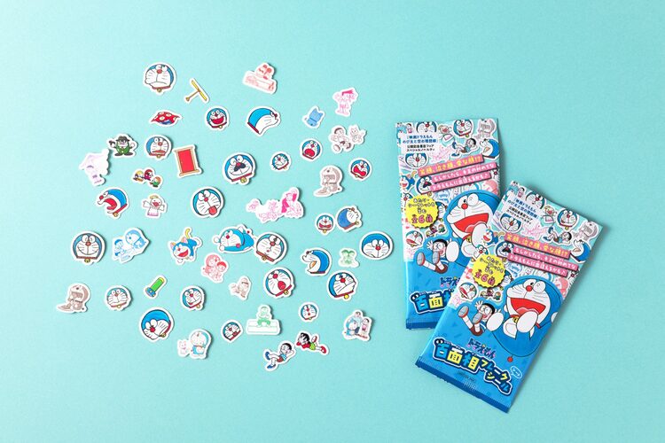 今回ノベルティとして用意されたのは「ドラえもん 百面相フレークシールシート」。フレークシールシートは全6種が用意され、「ひみつ道具」や「コスプレしたドラえもん」「アニマル」「日常」とテーマ別に分かれており、毎年好評を博している「あたり」やその全貌が隠されている「シークレット」もラインナップされている。各々のシートには15~17枚のフレークシールが付属。シートを軽く押せばフレークシールが抜ける仕様になっている。全種類集めると、てんとう虫コミックス「ドラえもん」の背表紙にある“ドラ顔”のシールが全巻分揃う。