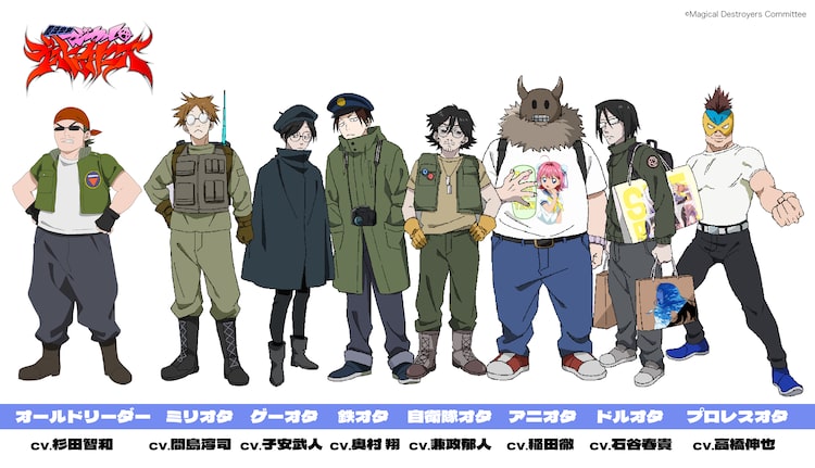 4月より「アニメイズム」枠で放送される「魔法少女マジカルデストロイヤーズ」。“古のオタク”であるオールドリーダー役を杉田智和が演じるほか、アキバ革命軍のメンバーとしてミリオタ役を間島淳司、ゲーオタ役を子安武人、鉄オタ役を奥村翔、自衛隊オタ役を兼政郁人、アニオタ役を稲田徹、ドルオタ役を石谷春貴、プロレスオタ役を高橋伸也が演じる。併せてキャスト陣からの意気込みコメントも到着した。