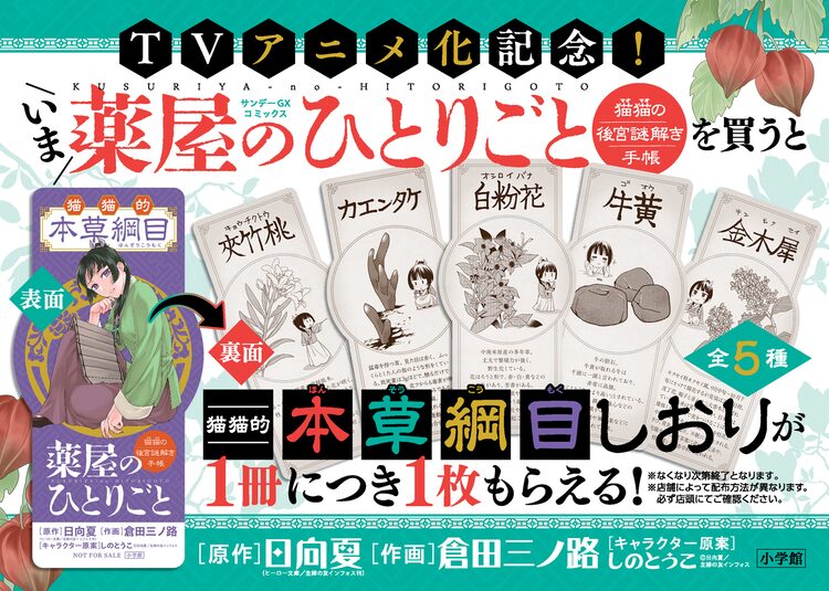 GX版「薬屋のひとりごと」しおりもらえる書店フェア、植物や漢方の豆知識学べる