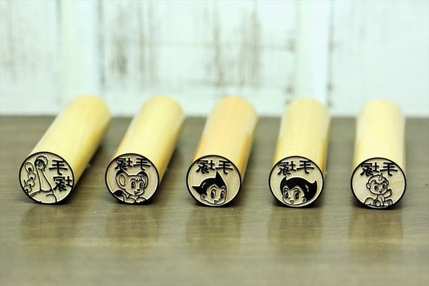 第1弾には「鉄腕アトム」「ブラック・ジャック」「ジャングル大帝」「火の鳥」「リボンの騎士」「ユニコ」の6作品から全18種のイラストがラインナップ。キャラクターとの相性を考えた3種類の書体が用意されており、好きな組み合わせでハンコを作ることができる。商品は気軽に使えるシャチハタタイプの丸型・角型と、銀行印としても使える木彫りタイプや黒水牛タイプから好みのものを選択。単品販売のほか、セット販売も用意されている。