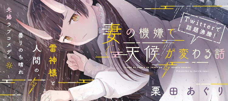 「妻の機嫌で天候が変わる話」は雷神様の女性・雷華と、その雷華を妻とした人間の男性・昭之の夫婦ラブコメ。人間とは違って雷華は歳を取らず、昭之と並ぶと父娘のように見られてしまう。近頃、雷華と距離を感じると思った昭之は、彼女が人目を気にしているのではないかと考える。しかし雷華が気にしているのは、天気にまつわる雷神の特殊な体質についてだった。