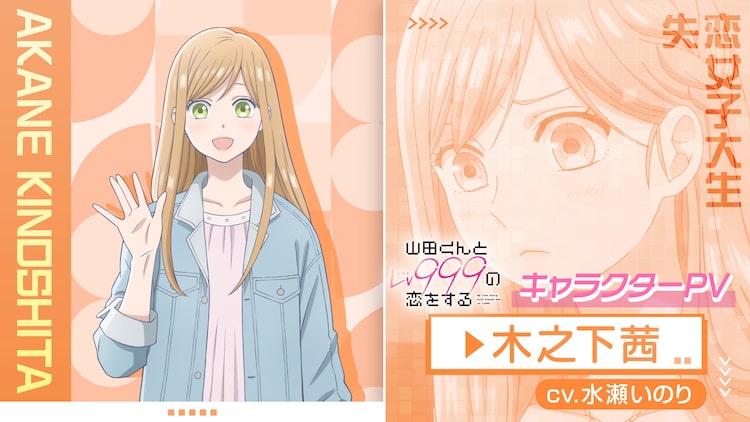 「山田くんとLv999の恋をする」は、彼氏に浮気されてフラれた女子大生・茜と、プロゲーマーの男子高校生・山田が、ネットゲームで出会うことから始まる恋愛コメディ。茜のキャラクターPVは、茜の山田に対するまっすぐな気持ちがうかがえる映像に仕上げられた。また水瀬いのり演じる茜が「山田! 山田! 山田!」と呼びかける声も聞くことができる。