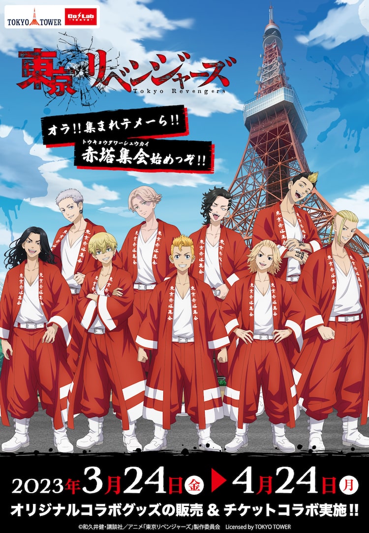 和久井健原作によるTVアニメ「東京リベンジャーズ」と東京・東京タワーのコラボイベント「オラ!! 集まれテメーら!! 赤塔集会始めっぞ!!」が、3月24日から4月24日まで開催される。