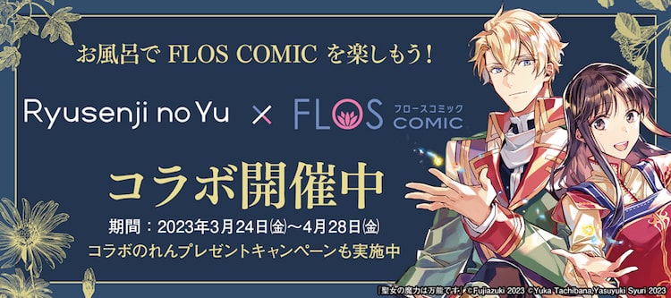 キャンペーン開催店では、岩盤浴エリア内コミックコーナーにFLOS COMIC作品を設置。店舗により状況は異なるが、約120冊が展開予定となっている。また「聖女の魔力は万能です」「陛下、心の声がだだ漏れです!」「弱気MAX令嬢なのに、辣腕婚約者様の賭けに乗ってしまった」「異世界で姉に名前を奪われました」のイラストをあしらったコラボのれんが登場。そのほか、ポスターや描き下ろしイラストを使用したスタンディなどの装飾も楽しめる。