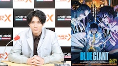 山田裕貴とアニメ映画「BLUE GIANT」のビジュアル。