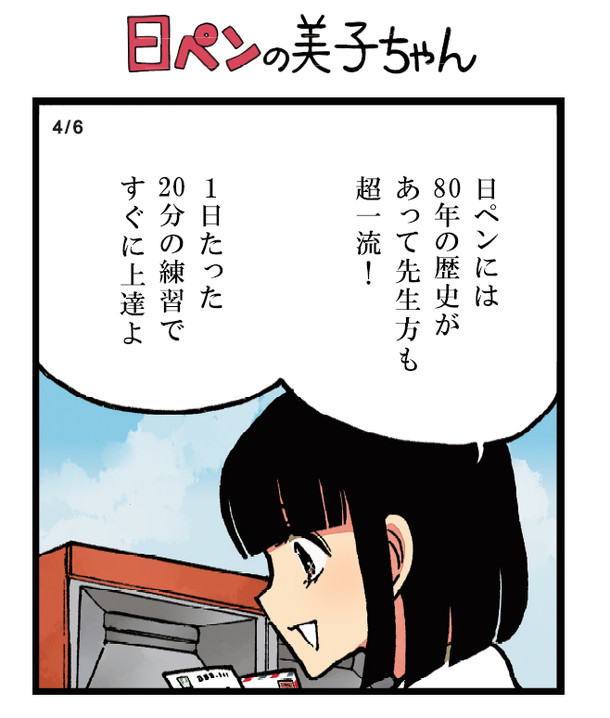 「日ペンの美子ちゃん」は日本ペン習字研究会の広告マンガで、現在は6代目となる服部が執筆。公式Twitterアカウント(@nippen_mikochan)を中心に新作マンガが発表されている。
