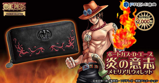 尾田栄一郎原作によるアニメ「ONE PIECE」に登場するポートガス・D・エースをモチーフにした本革財布「ポートガス・D・エース 炎の意志 メモリアルウォレット」が、オンラインショップ・PREMICOにて2000点限定で販売されている。
