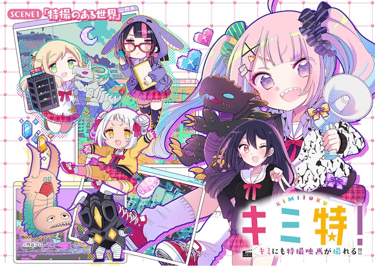 「キミ特!~キミにも特撮映画が撮れる!!~」は月刊ヒーロー雑誌・てれびくん(小学館)の編集部が手がける特撮女子マンガ。原案協力に特撮ドラマ「仮面ライダーW」のプロデューサー・塚田英明を迎え、女子高生・富士見遥が特撮映画の魅力にのめり込んでいくさまが描かれる。
