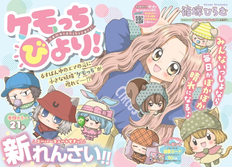篠塚ひろむの新連載「ケモっちびより!」が、本日4月3日発売のちゃお5月号(小学館)でスタートした。