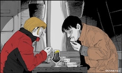 映画「J005311」は第44回ぴあフィルムフェスティバルで満場一致のグランプリを受賞した作品。野村一瑛演じる神崎と、河野宏紀演じる山本という生きづらさを抱える男2人の旅路を通じて、世間に取り残された孤独感が描かれる。たらちねは「生きた、生きてきた人間の偶然の出会いが惑星衝突に匹敵する奇跡であると理解し、心がうち震える。そういう映画でした」とコメント。また映画を鑑賞した人には、たらちね描き下ろしのイラストをプリントしたステッカーがプレゼントされる。イラストはたらちねが作中のシーンを描き下ろしたものとなる。