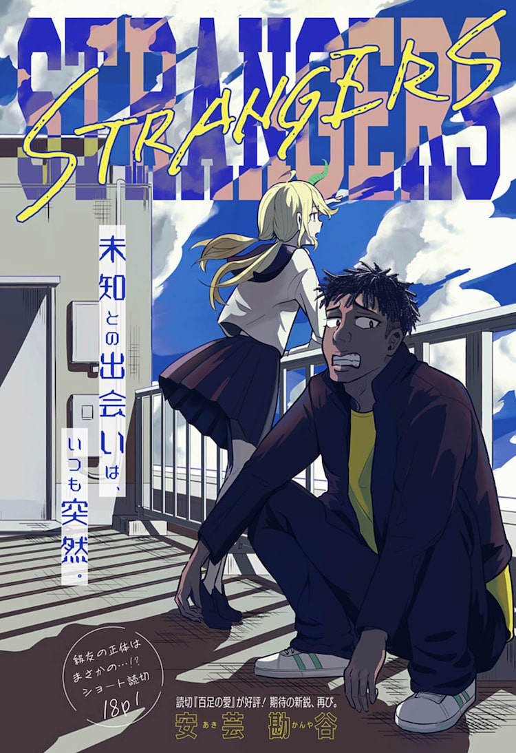 ケンカに明け暮れる男子高校生が未知の存在と遭遇、読切「STRANGERS」 2023年4月7日2023年4月7日 editor 「STRANGERS」扉ページ (c)安芸勘谷/集英社安芸勘谷の読み切り「STRANGERS」が、本日4月7日に少年ジャンプ+で公開された。 「STRANGERS」は番長と呼ばれケンカに明け暮れる高校生のボブと、彼が出会った宇宙人の少女が織りなす物語。一族から追われる身だという少女は、ボブにとあるお願いをすることに。しかしそのお願いはボブにとって気乗りしないもので……。未知と遭遇してしまったボブの受難が描かれる。 関連記事映画「10DANCE」初公開の映像に竹内涼真と町田啓太のダンスシーン、キーアートも公開押山清高監督主催の「ルックバック展」展示内容が明らかに、チケット販売は本日から「猫と竜」猫に育てられた猫竜役は子安武人、ティザーPV公開 2026年7月放送開始「鬼滅の刃」無限城編、入場者特典第10弾は蛇腹ポストカードセット「鎧伝サムライトルーパー」5人の素顔が垣間見える新映像、凱と上杉魁人が衝突「ベルセルク」ガッツVSグルンベルドの死闘がジオラマ化、内蔵LEDで臨場感を表現 Tweet