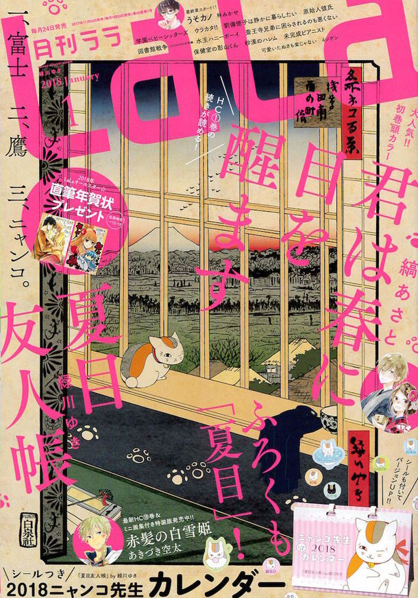 緑川ゆき「夏目友人帳」の2018年版卓上カレンダーが、本日11月24日発売のLaLa2018年1月号(白泉社)に付属している。