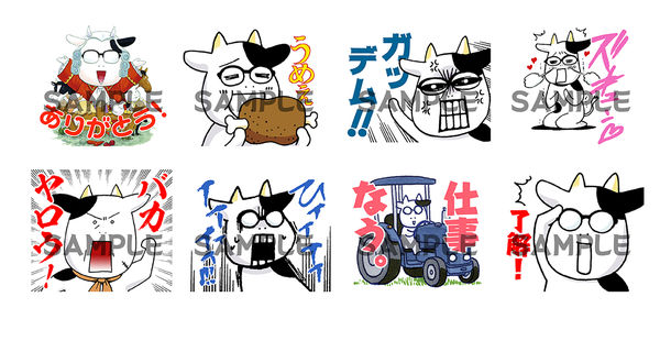 「百姓貴族」はマンガ家になる前、北海道で7年間農業に従事していたという荒川の酪農ライフを綴ったエッセイマンガ。スタンプは全8種で、「了解」「うめぇ」のデザインには荒川の描き下ろしイラストが用いられた。購入には120円または50コインが必要だ。