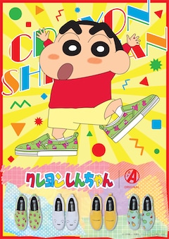 発売を記念し、野原一家が住んでいる埼玉県春日部市内にあるABC-MARTララガーデン春日部店では、シューズデザインのモチーフとなったアイコンや野原一家がABC-MARTに訪れている様子のガラスラッピングを実施。またABC-MART GRANDSTAGE池袋店、梅田店ではポップアップブースなども設置される。コラボレーションシューズの価格は税込4950円。商品は裏返して組み立てるとふたば幼稚園の正門前の様子が描かれたシューズボックスに封入される。