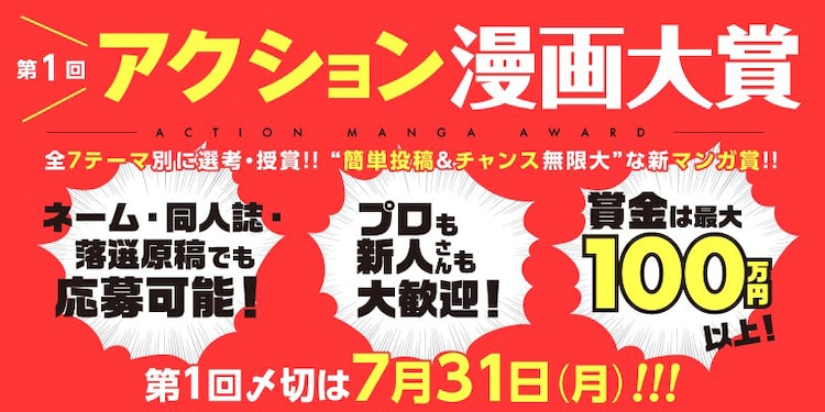 なお上記7部門に当てはまらないジャンルを取り扱う常設部門も設置された。型にはまらない作品はこちらで発表してみよう。応募形態などの詳細は、双葉社のマンガ投稿サイト・アクションPOST!でご確認を。