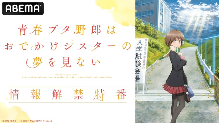 劇場アニメ「青春ブタ野郎はおでかけシスターの夢を見ない」の情報解禁特番が、5月7日20時から21時までABEMAのアニメLIVEチャンネルで生配信される。