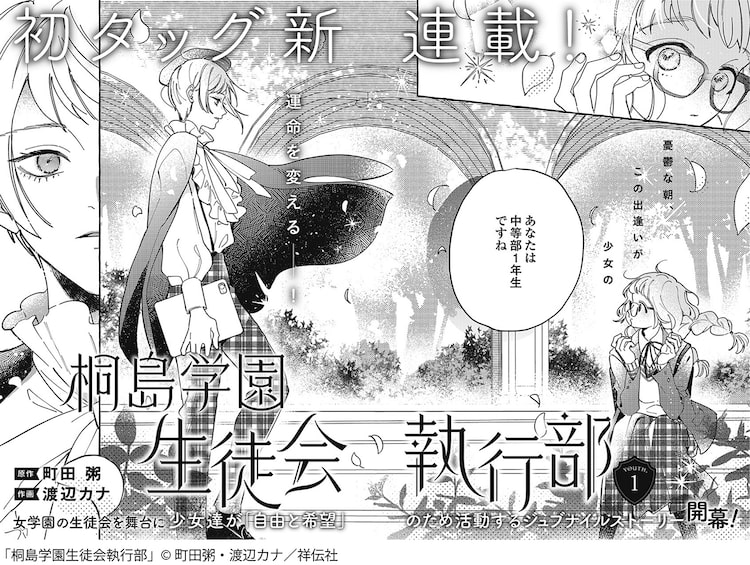 町田粥原作、渡辺カナ作画による新連載「桐島学園生徒会執行部」が、本日4月8日発売のフィール・ヤング6月号(祥伝社)でスタートした。