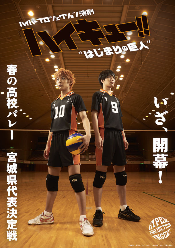 「ハイパープロジェクション演劇『ハイキュー!!』“はじまりの巨人”」は2018年4月28日からの東京・日本青年館ホールを皮切りに、兵庫、福岡、宮城、大阪、さらに凱旋公演として東京にて上演される。キャストはすでに発表されていた日向翔陽役の須賀健太を含め、シリーズ最多の33名。条善寺高校の照島遊児役で船木政秀、和久谷南高校の中島猛役で柳原凛、白鳥沢学園高校の牛島若利役で有田賢史と、初参加のメンバーも多く名を連ねる。