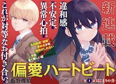 「偏愛ハートビート」は幼い頃のとある事故をきっかけに、心臓をドクドクと鼓動させるような刺激を求めるようになった少年・河辻悠を描く物語。悠は陸上部に入部して走ることで身体に負担をかけたり、恐怖感で心拍を上げようとホラーが好きになったりと、さまざまな方法を試しているものの、事故のときのような感覚を得られずにいた。そんな中、中学時代にトラブルに巻き込まれているところを助けた希咲という少女と高校で再会した悠。何かと悠に話しかけてくる希咲だったが、彼女にはとある秘密があり……。生の実感を求める少年と、得体の知れない少女の新しい愛の形が描写される。